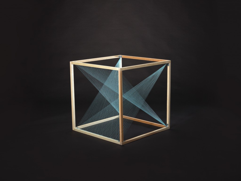 Thread Cube ist ein Spiel mit Form, Struktur, Proportion und Perspektive. Trotz der fest verknoteten Fäden bleibt die Struktur des Modells durch den Wechsel der Perspektive in stetiger Wandlung und bietet unzählige Möglichkeiten der Betrachtung. So lassen sich je nach Perspektive symmetrische Verhältnisse schaffen, die sich im nächsten Moment durch die Verdichtung der Fäden und Veränderung der Proportionen auflösen. Niemals kann die vom Modell gebotene Struktur von mehreren Leuten gleich gesehen werden, doch sie kann gleichzeitig auf unterschiedlichste Weisen gesehen werden. Die Rezeptionserfahrung gestaltet sich somit immer wieder neu. Die Struktur verwehrt sich trotz seiner offensichtlichen Rahmung permanent einer allumfassenden Betrachtung. Der Würfel bemisst sich auf 60x60x60cm. Es wurden 220 Fäden gespannt.